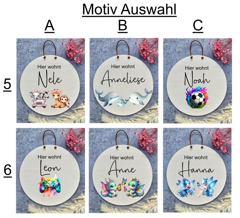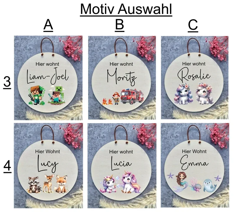 Personalisiertes Türschild Kinderzimmer aus Holz – Namensschild mit Wunschname & süßen Motiven