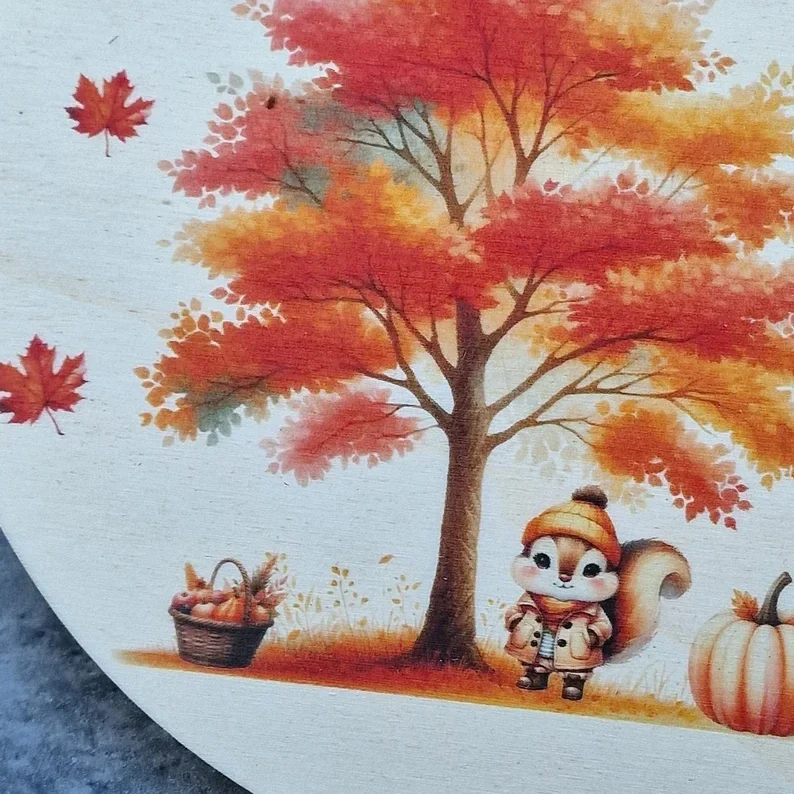 Hallo Herbst Türschild aus Holz – 20 cm Türschild mit Laubbaum, Kürbis, Reh, Eichhörnchen & Blätter