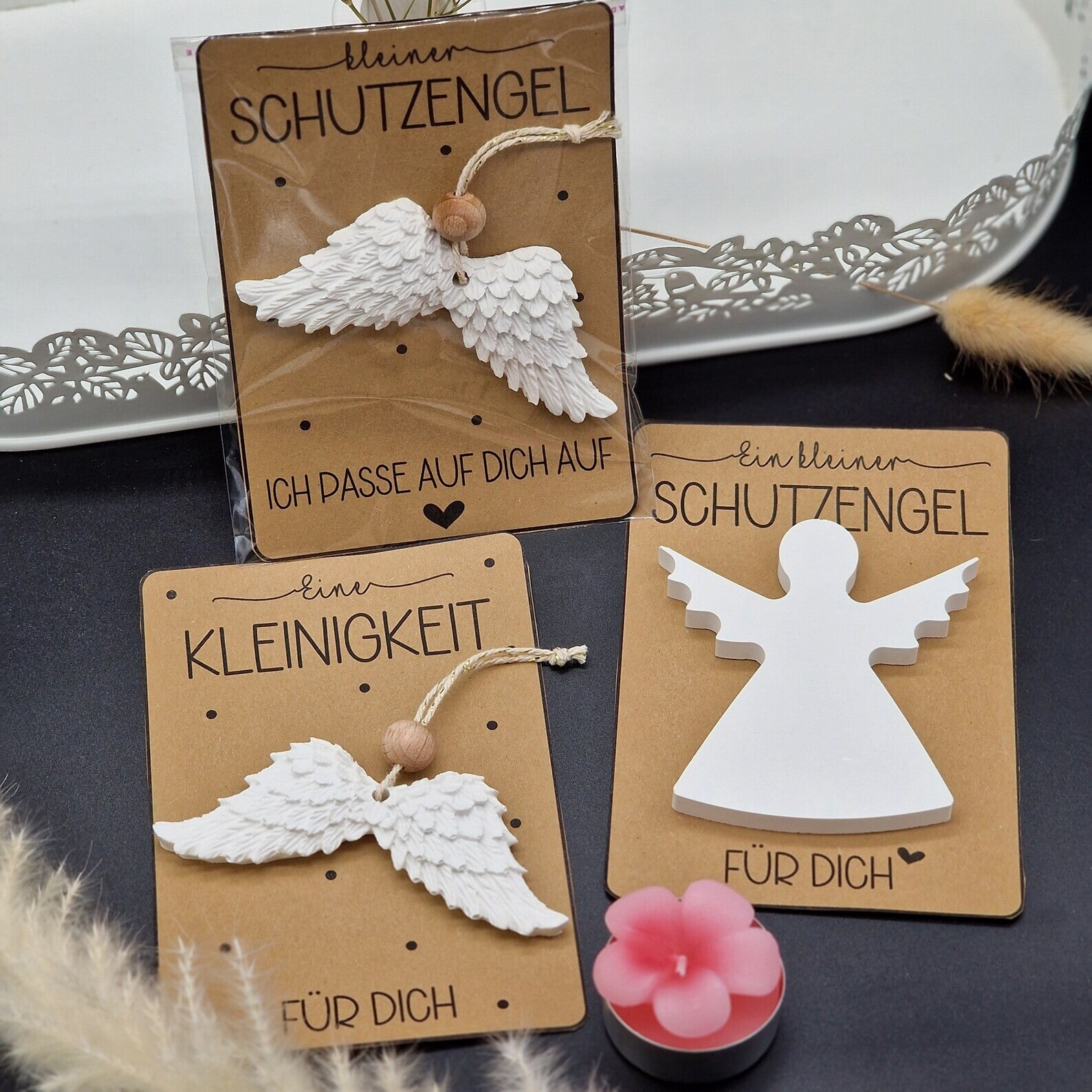 Engel Anhänger aus Raysin/Keraflott – Schutzengel „Ich passe auf dich auf“ – Geschenk & Dekoration