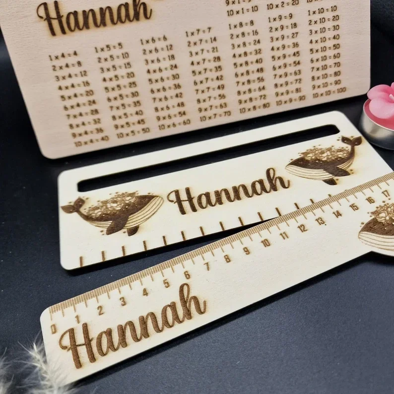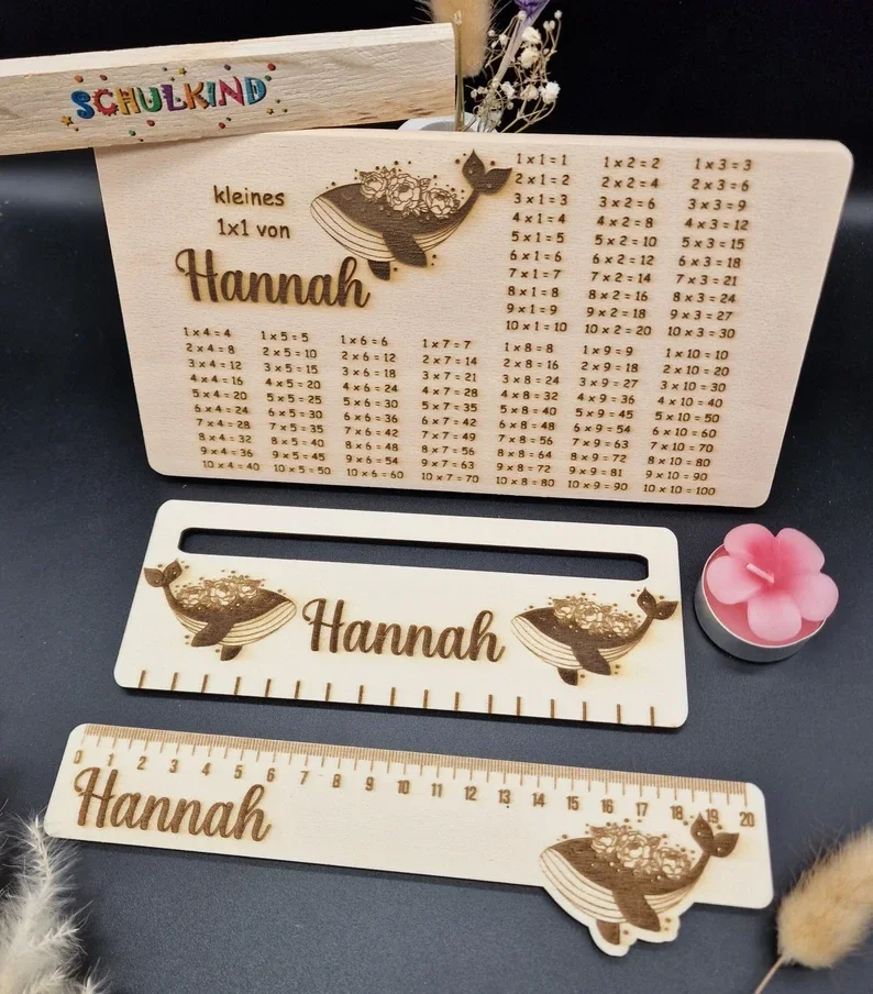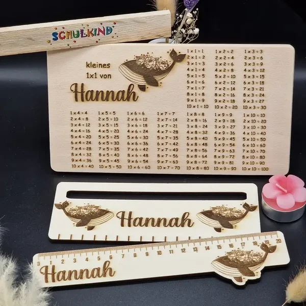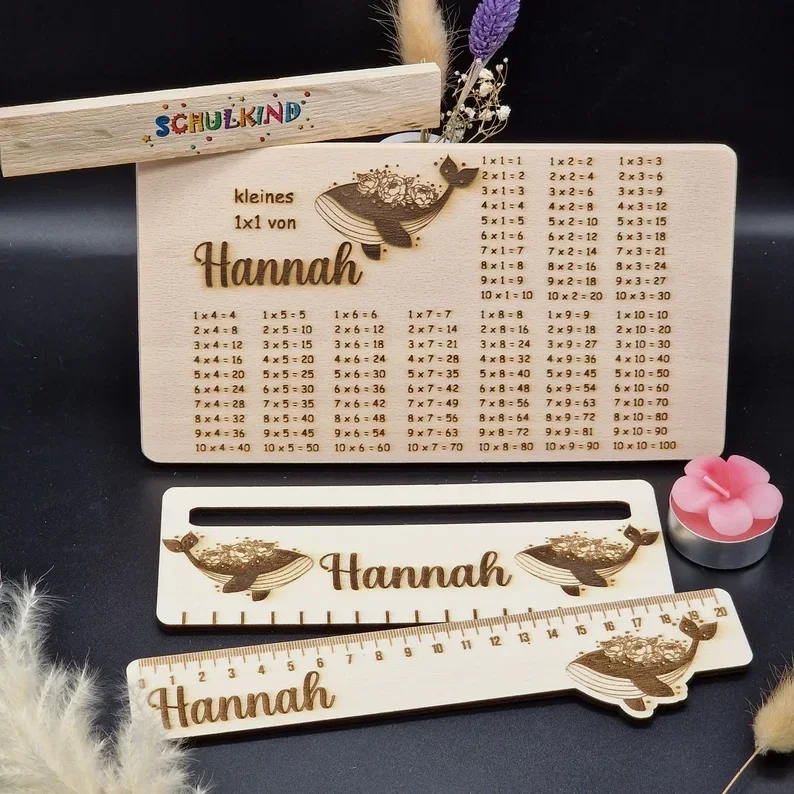 Einzigartiges Geschenkset zur Einschulung 🎒 Personalisiertes Frühstücksbrett aus Buchenholz mit Wal-Motiv, dazu Lineal & Lesehilfe aus Holz. Liebevoll handgefertigt & individuell mit Namen graviert.