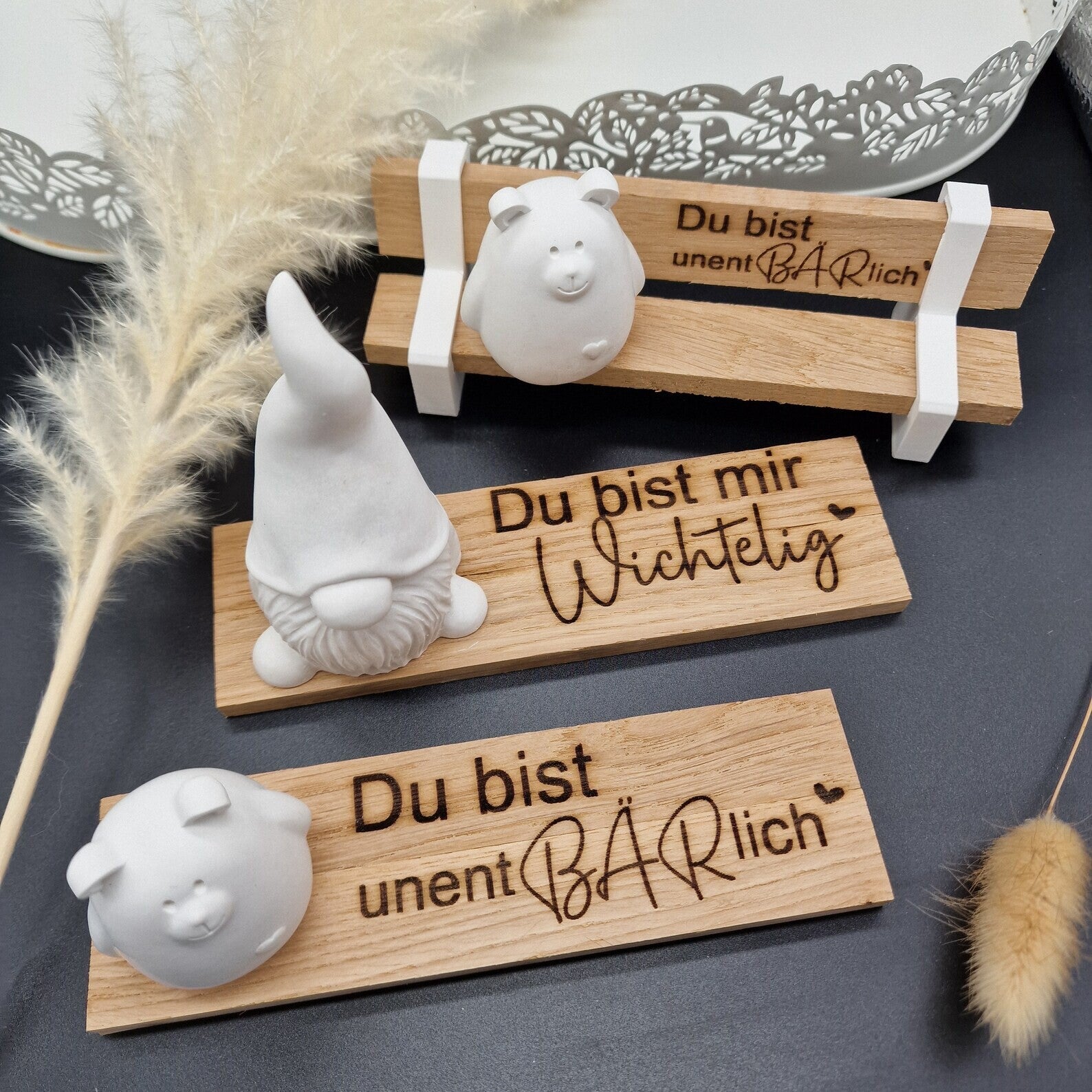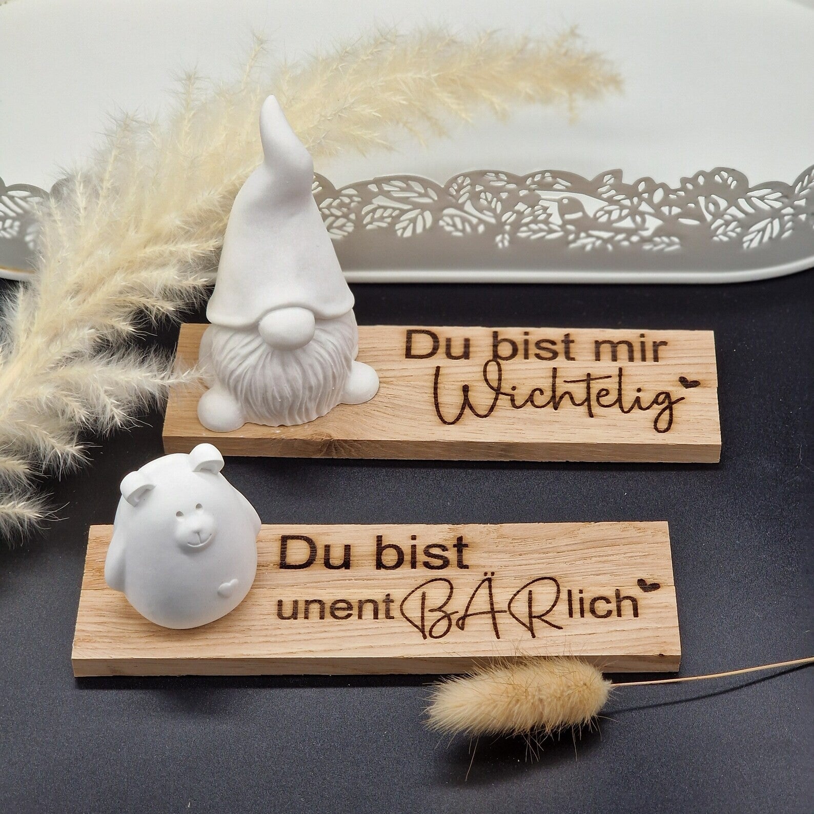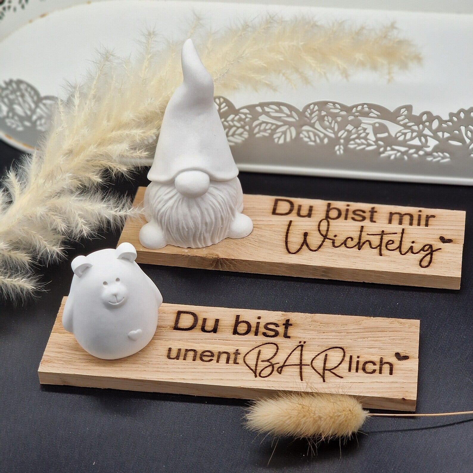 Handgemachte Keraflott Figuren mit Gravur & Spruch – Personalisierte Geschenkidee aus Keraflott & Holz