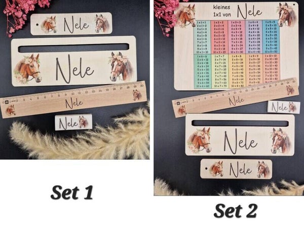 Materialien: Radiergummi, Lesezeichen, Lesehilfe, 1x1 Lerntafel, Lineal, Personalisiert