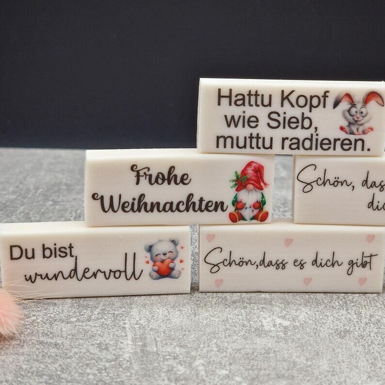 Bedruckter Radiergummi mit UV-Druck – Verschiedene Motive zur Auswahl, Geschenk für Kinder & Erwachsene