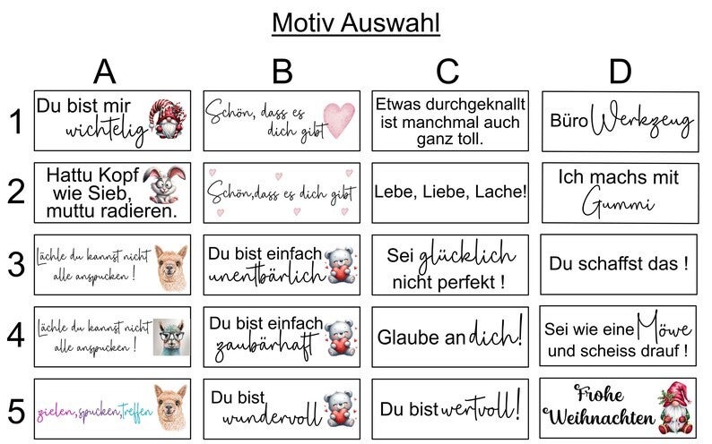 Dieser Radiergummi mit hochwertigem UV-Druck ist nicht nur ein praktischer Helfer, sondern auch ein echter Hingucker. Du kannst aus verschiedenen fertigen Motiven wählen – von verspielt bis stylisch. Perfekt für Schule, Büro, Uni oder als originelles Geschenk.