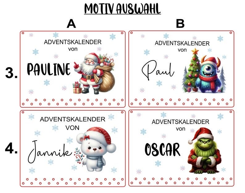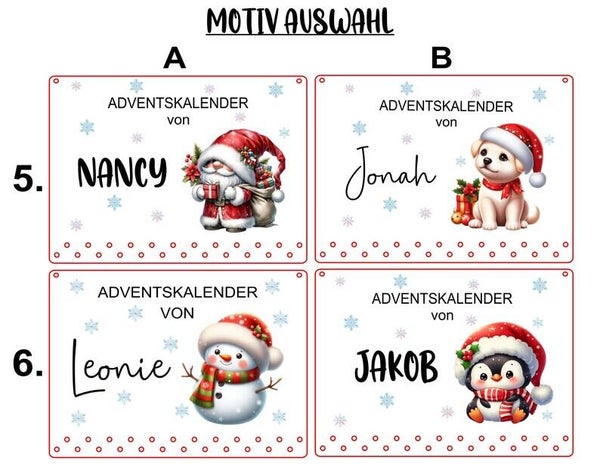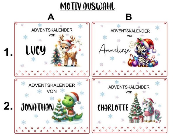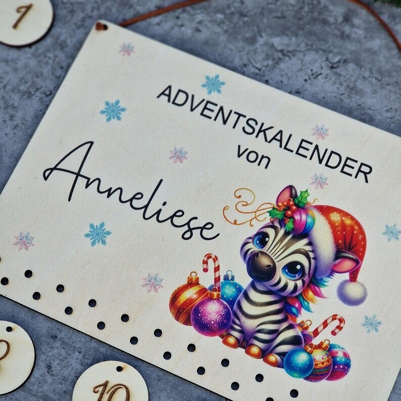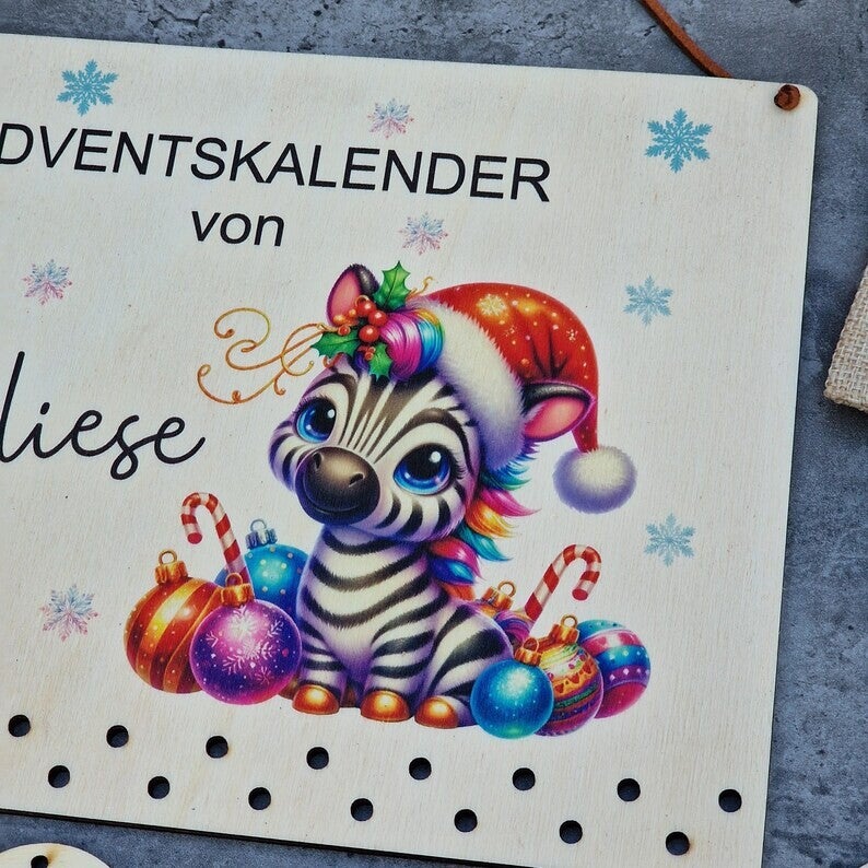 Gestalte die Vorweihnachtszeit individuell mit unserem personalisierten Adventskalender aus Holz ! Das liebevoll handgefertigte Adventskalender-Schild aus 4 mm Pappelholz kann mit 24 Jutesäckchen befüllt werden – ideal für kleine Überraschungen, Süßigkeiten oder kleine Geschenke. Mit süßem Tiermotiv und dem Namen deines Kindes wird der Adventskalender zu einem besonderen Highlight, das jedes Jahr wiederverwendet werden kann.