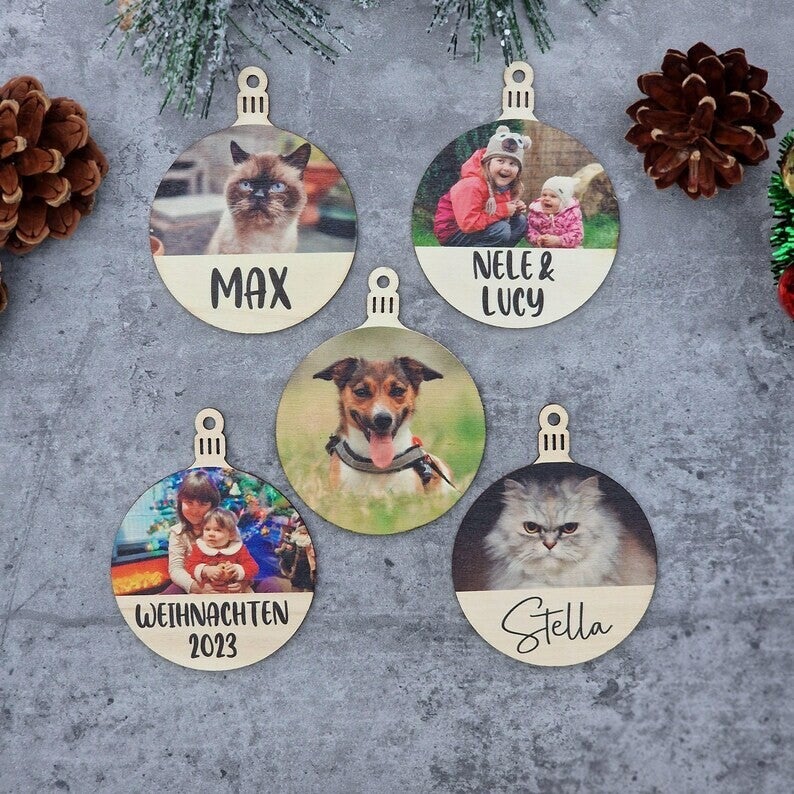 Christbaumkugel mit Foto Personalisiert mit Namen / Christbaumschmuck Holz / Weihnachtskugeln / Weihnachtsbaumschmuck Bild / Fotogeschenk
