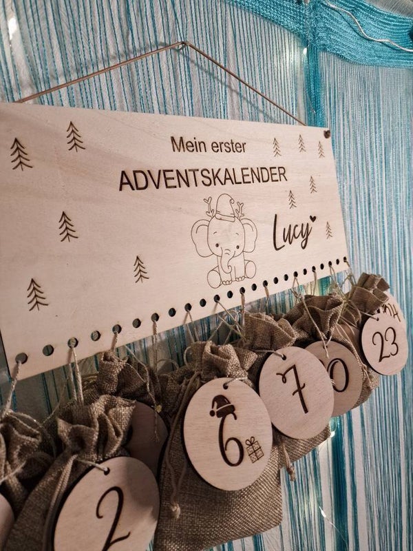 🎄 Personalisierter Adventskalender aus Holz mit Jutesäckchen & Holzzahlen