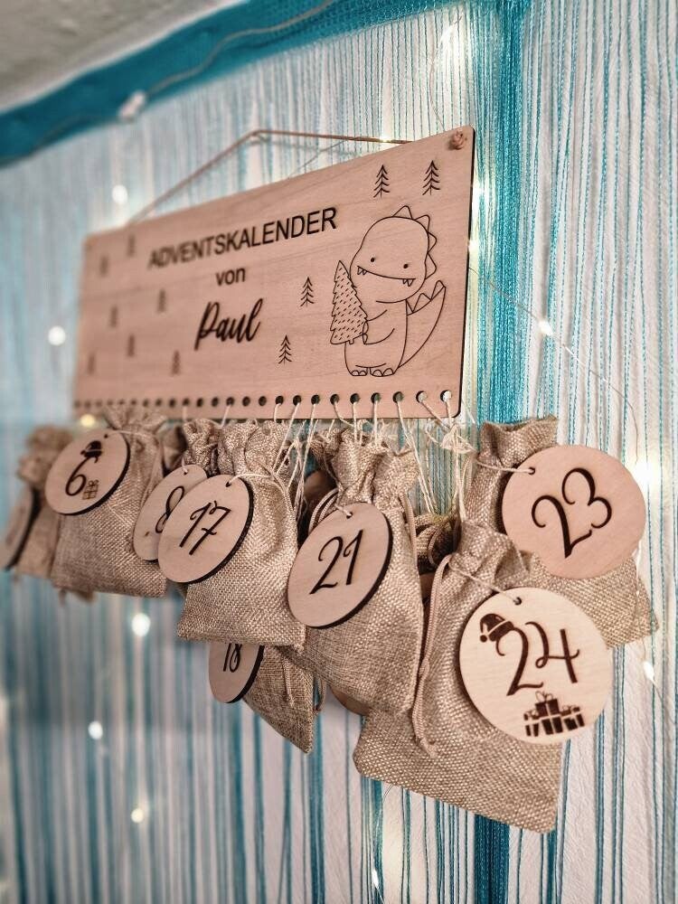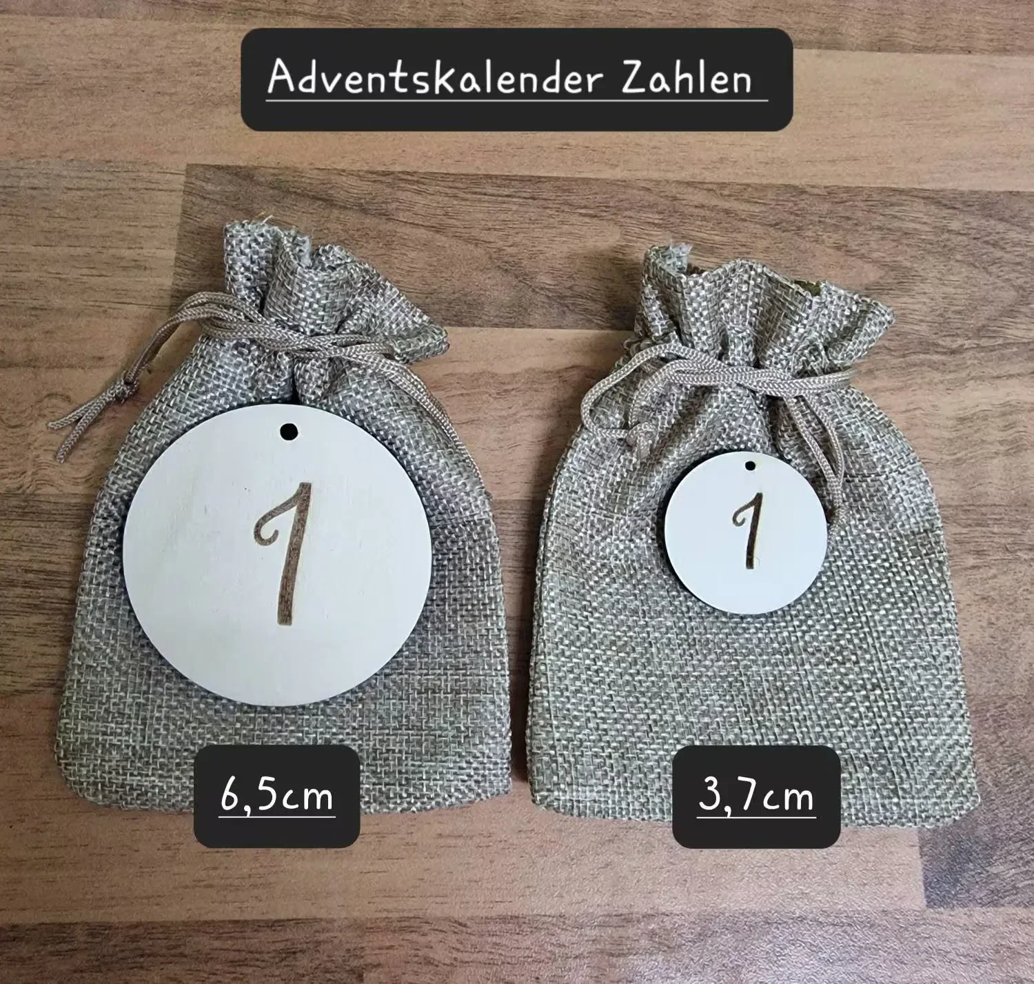 🎄 Personalisierter Adventskalender aus Holz mit Jutesäckchen & Holzzahlen