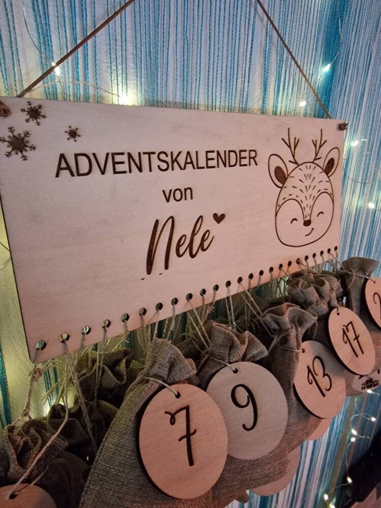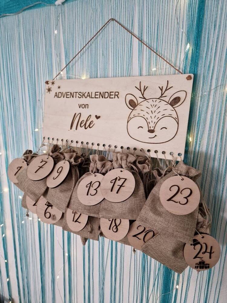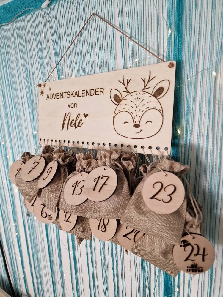 Personalisierter Adventskalender mit Name, Weihnachten, Adventskalender aus Holz, Advent, Jutesäckchen, Adventskalender zum befüllen, Kinder