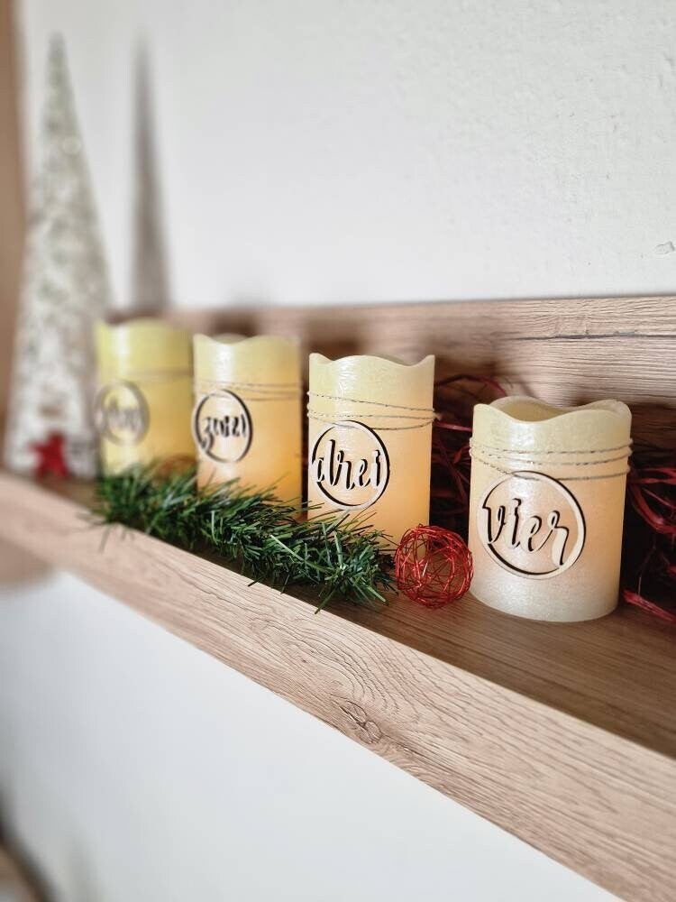Adventszahlen 1 - 4 l Adventszahlen aus Holz l DIY Set / Anhänger für Adventskranz Kerzenanhänger Zahlen Eins bis Vier Zubehör Adventskranz