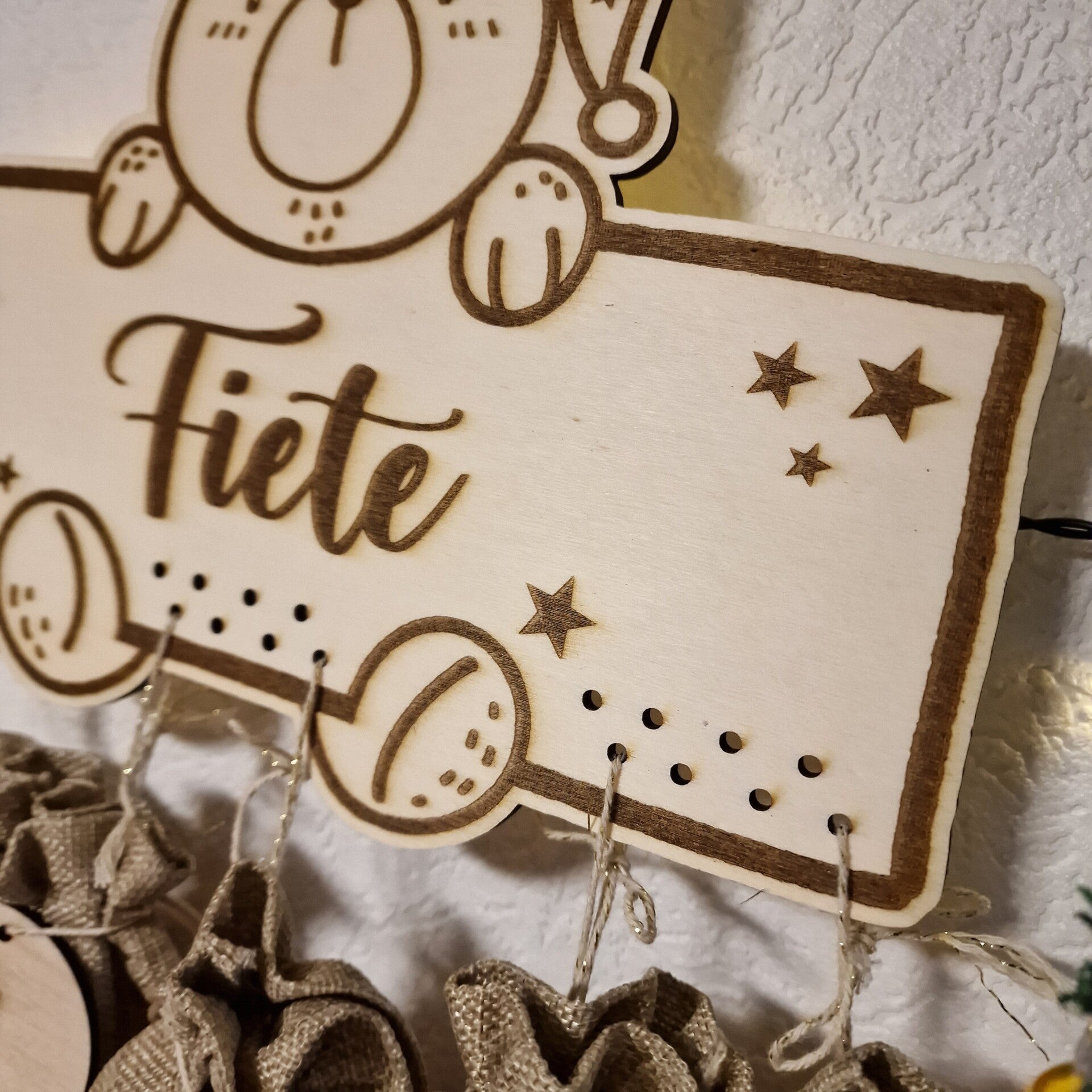🎄 Personalisierter Adventskalender aus Holz mit Jutesäckchen