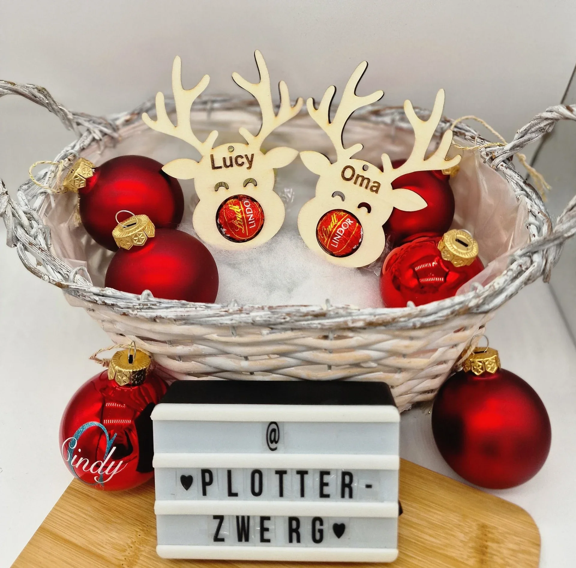 Rentier Weihnachtsdekoration, Lindor/ Ferrero Weihnachtskugeln, Rentier Baumschmuck mit Schokolade, Weihnachtsmann Rentier Personalisiert