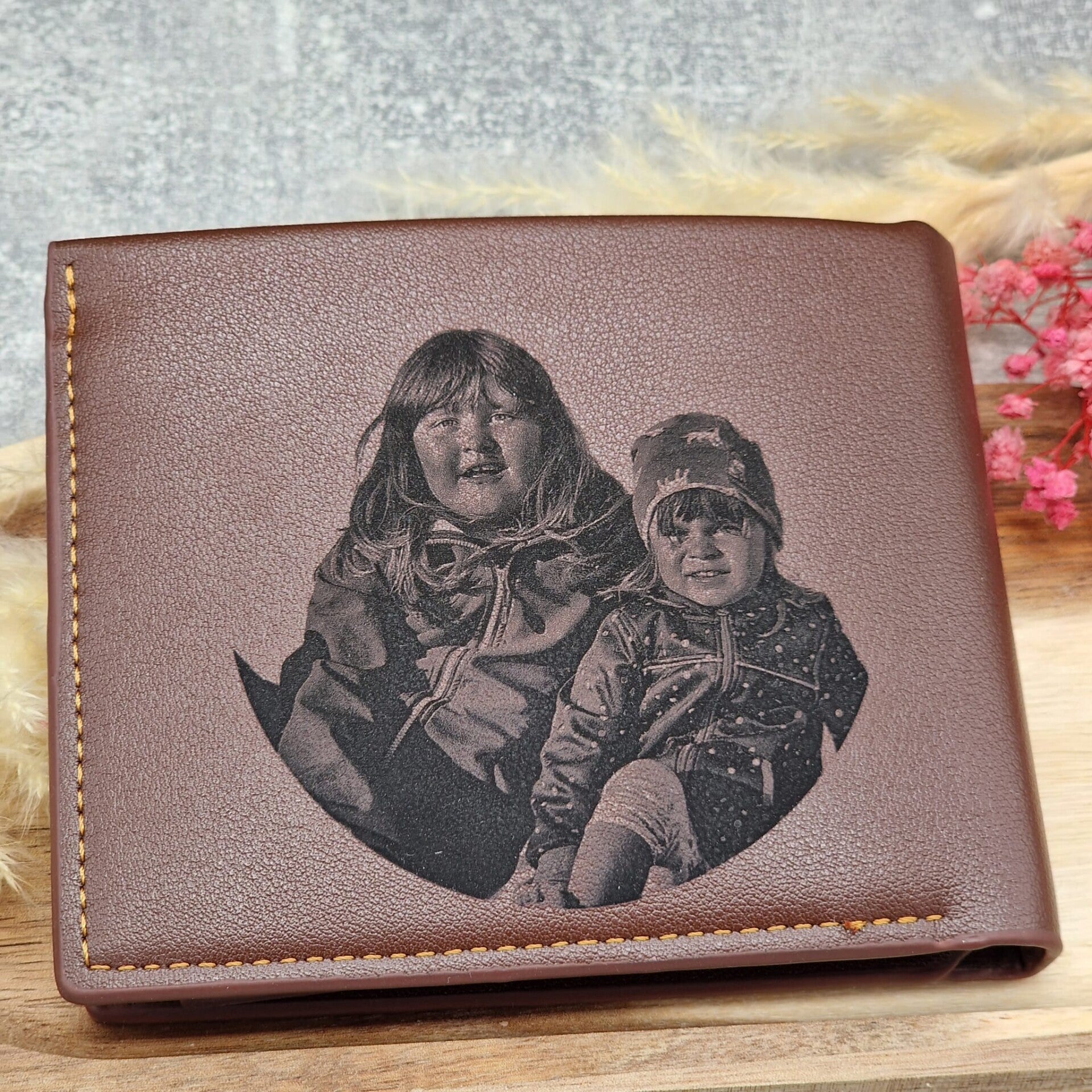 Hochwertige Geldbörse mit individueller Fotogravur – ein besonderes und persönliches Geschenk für jeden Anlass. Die detailreiche Lasergravur macht das Portemonnaie zu einem einzigartigen Erinnerungsstück, ideal für Familie, Partner oder Freunde. Robustes Material, saubere Nähte und elegante Optik.